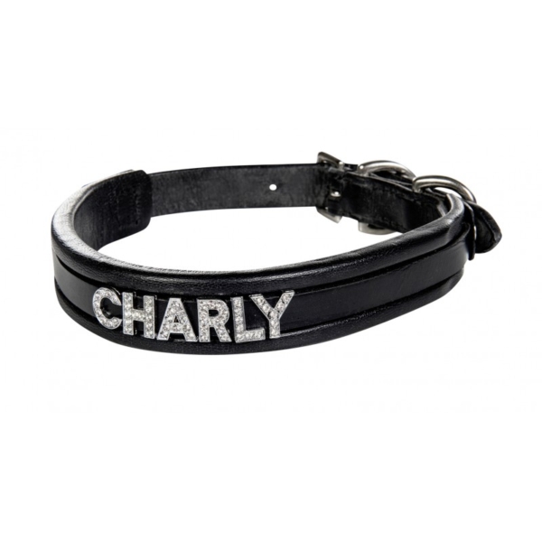 HKM Halsbånd med rem for påsætning af bogstaver og tal. 40 cm. Sort