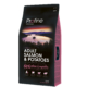 Kylling 40 % (tørret kylling 20 %, kyllingemel 20 %), majs, kartofler (20 %), kyllingefedt (konserveret med blandede tokoferoler, en kilde til vitamin E) (8 %), tørrede æbler, ølgær, hydroliseret kyllingelever (2 %), rejer (1,5 %), lakseolie (1 %), havalger (0,5 %), glukosaminsulfat (0,02 %), cikorierødder (en kilde til mannan-oligosakkarider 0,018 %), urteblanding (fennikel, basilikum, salvie 0,018 %), frukto-oligosakkarider (0,012 %), yucca schidigera-ekstrakt (0,01 %), chondroitinsulfat (0,012 %).